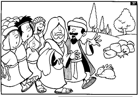 Когда они дошли до того места, где был Иисус, то увидели большую толпу народа, окружающую Иисуса. Иисус был очень занят. Может быть, Он исцелял больных, а может быть, рассказывал людям о Царстве Небесном. Ученики Иисуса стояли рядом с Ним и пропускали к Иисусу по одному, чтобы люди не толпились.